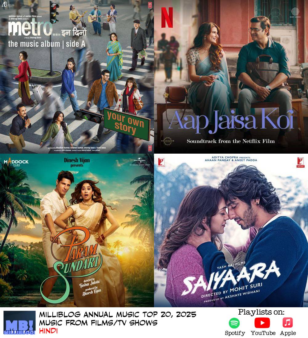 Hindi film music, in 2025, paints a picture of a landscape where the heavyweights continue to dominate, but with interesting skirmishes from the younger or less frequent composers. The clear frontrunner here is Pritam, whose work in ‘Metro… In Dino’ is prolific, to say the least. However, his work in both War 2 and Sikandar were banal. Sachin-Jigar were the other heavyweights with a more consistent record – across both Thamma and Param Sundari, they had mighty good music, and some of their other songs from films like Nadaaniyan and Maalik weren’t bad either.