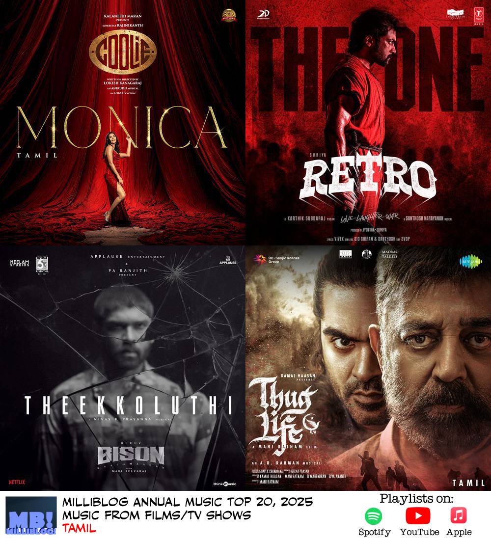 Anirudh seems distracted and templatized, though he had the best banger of 2025 in Coolie. I was mostly underwhelmed with the other songs in Coolie, and his work in Madharaasi and Vidaamuyarchi.