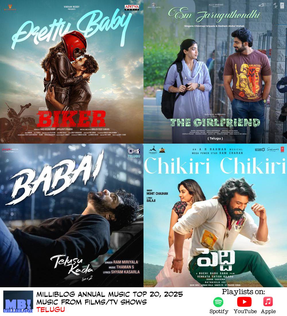 I continue to see other Tamil composers do very differently (from their Tamil output) in Telugu – Ghibran with Biker (the single from this film zooms right to the top of my list, and I’d love to hear what more Ghibran has in store in this soundtrack); A R Rahman with Peddi; Harris Jayaraj with Bad Boy Karthik; Vivek-Mervin in their debut, Andhra King Taluka, for instance. Ajaneesh continues to gnaw in Telugu with good enough/not path-breaking work in films like Arjun Son Of Vyjayanthi and Thammudu. I did expect a lot more from Stephen Devassy in Kannappa, but in the overall soundtrack, Mani Sharma’s solo song beat the other songs, in my view.